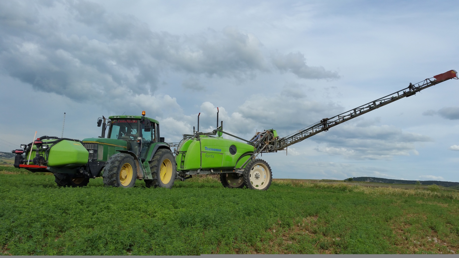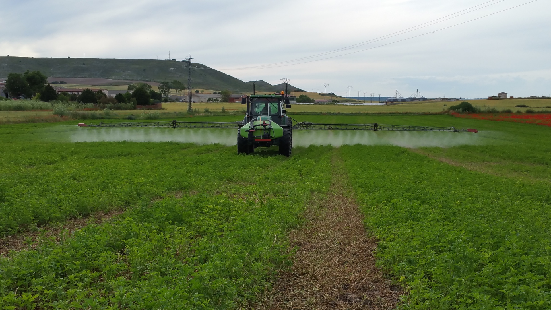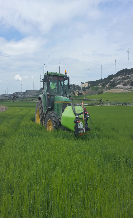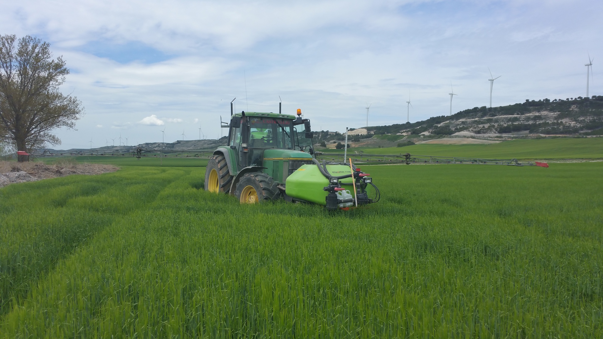 Disponemos de varios equipos de aplicación, de anchuras de trabajo de 12m, 24m y 30m (para fungicidas) equipados con todo tipo de boquillas para abonos líquidos, nitrogenados, fungicidas, herbicidas que requieren poco mojado, etc.